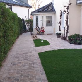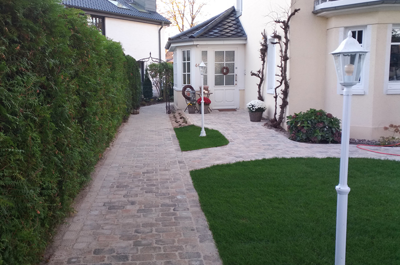 Wir verlegen sämtliche Materialien – vom Naturstein über Kies bis zum Betonpflaster.